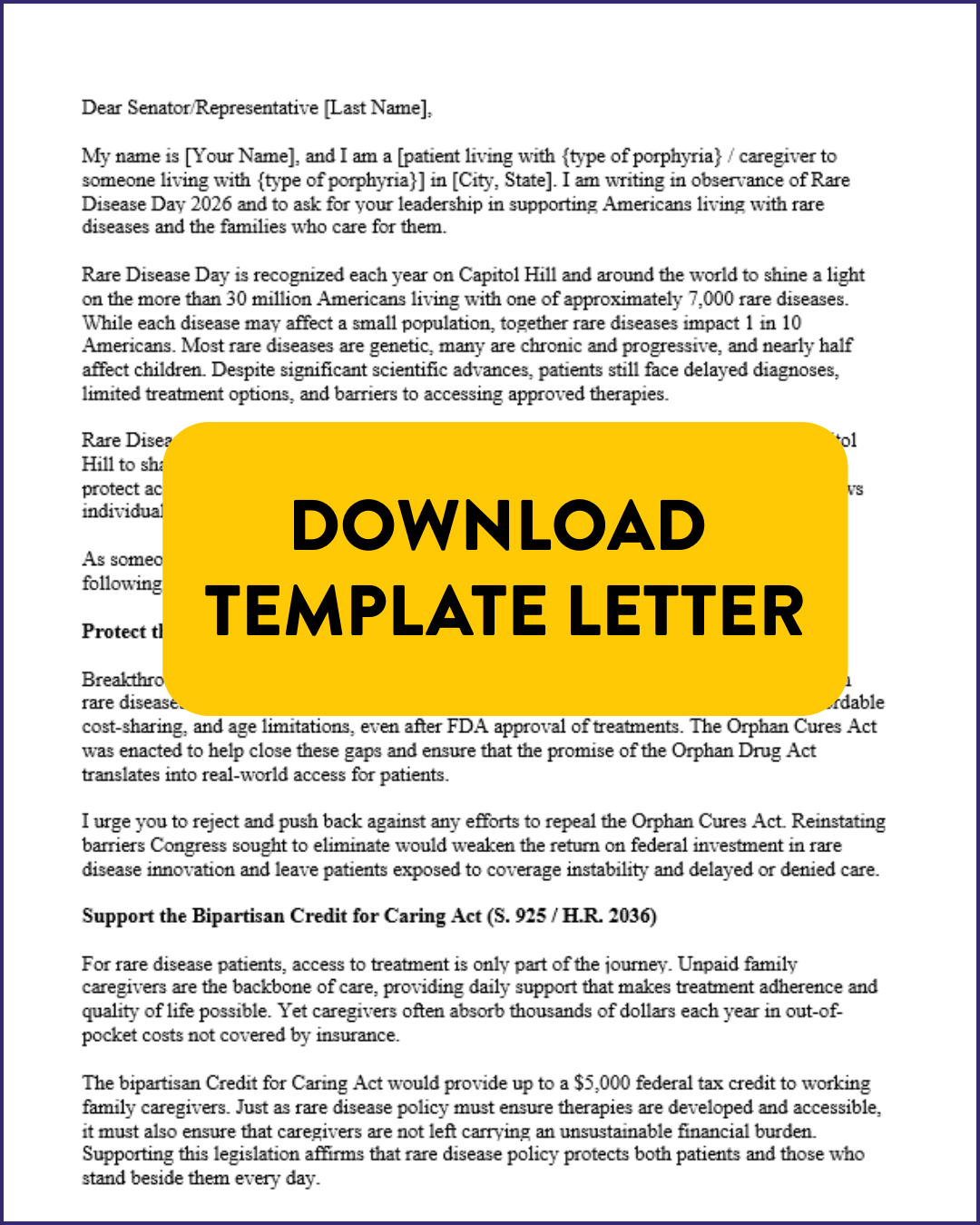 United Porphyrias Association is working with our partners in the rare disease community to advocate for two important legislative decisions. Write to your member of Congress to ask for their support to: