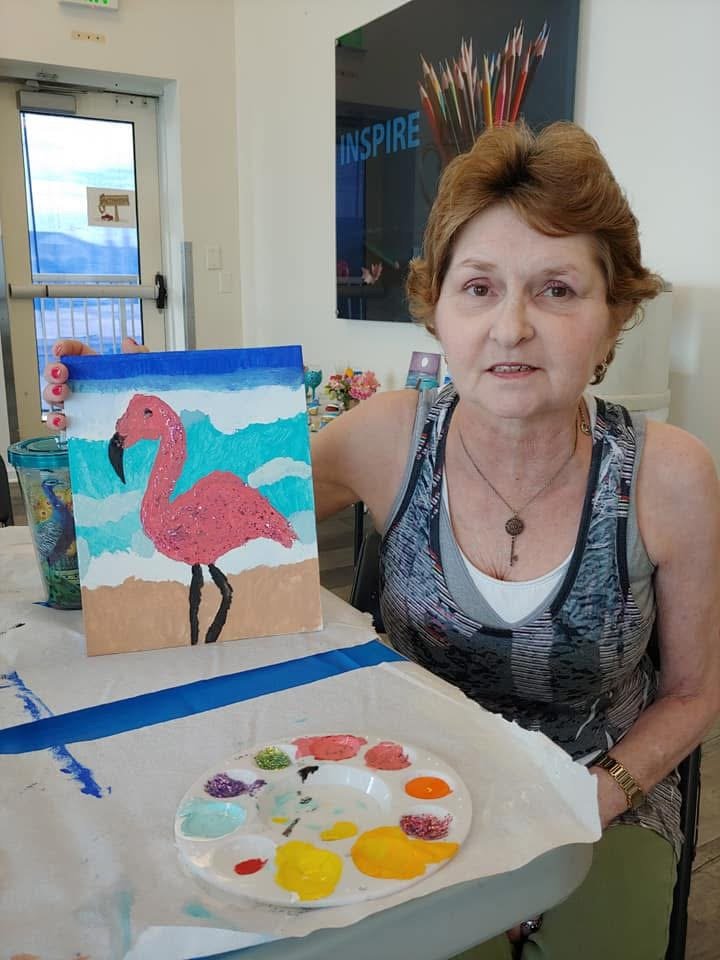 Another day, we painted flamingos on small canvases.
